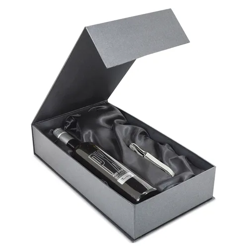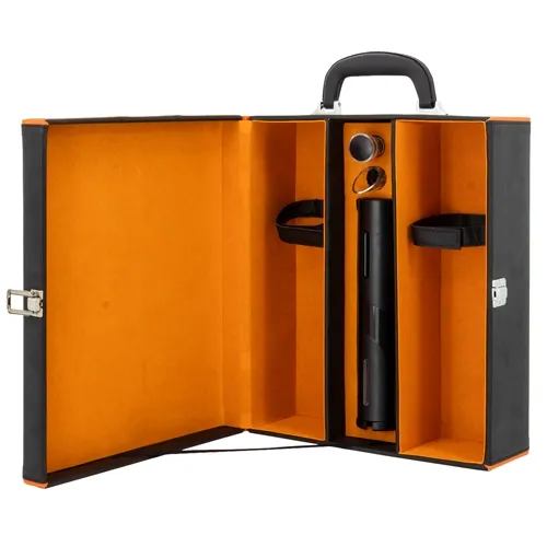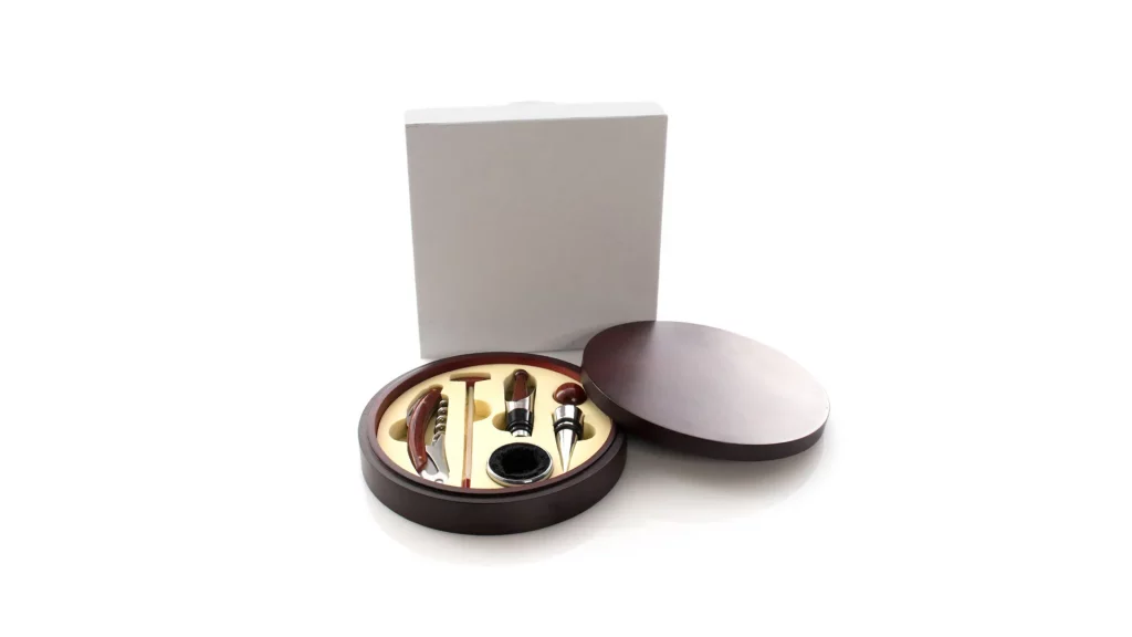 - Estuches con accesorios para vinos: Equipados con prácticos complementos como sacacorchos, anillos antigoteo, termómetros, tapones y más, nuestros estuches ofrecen todo lo necesario para disfrutar del vino como un verdadero sommelier.